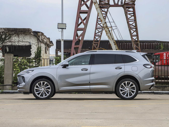 再来看车身侧面部分,侧面采用Z字型腰线设计,配合20英寸多辐轮毂(高配车型),在光影流转间展现雕塑美学理念。2833mm超长轴距配合短前悬设计,既保证车内空间利用率,又维持车身比例协调。车门下方镀铬饰条与艾维亚专属铭牌,成为身份识别的点睛之笔。车顶部分的银色行李架更是增加新车的越野氛围。车身尺寸方面,长宽高分别为4822x1883x1695毫米,轴距为2833毫米。